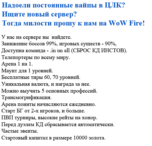 — Продвижение в один клик, интеллектуальный подбор запросов, покупка самых лучших ссылок с высокой степенью качества у лучших бирж ссылок. — Регулярная проверка качества ссылок по более чем 100 показателям и ежедневный пересчет показателей качества проекта. — Все известные форматы ссылок: арендные ссылки, вечные ссылки, публикации (упоминания, мнения, отзывы, статьи, пресс-релизы). — SeoHammer покажет, где рост или падение, а также запросы, на которые нужно обратить внимание. SeoHammer еще предоставляет технологию Буст, она ускоряет продвижение в десятки раз, а первые результаты появляются уже в течение первых 7 дней. Зарегистрироваться и Начать продвижение Когда у босса останеться 50% хп, начнется третья фаза. Тактика прохождения боссов Рубинового Святилища (РС) 10-25 Фаза 3: Появляются порталы, которые связывают обычную и сумеречную реальность. Клон босса в обычной реальности возвращается в бой. Необходимо разделить рейд на 2 группы: 1 танк, 1 хил и половина дд переходят по порталу в обычную реальность, а все оставшиеся в сумеречной реальности начинают бить босса. Через одну минуту, на клоне в обычной реальности будет бафф(+100% наносимого урона,+200%получаемого урона). В этот момент, все должны выйти из сумеречной реальности и под героизмом убить босса в обычной реальности. |